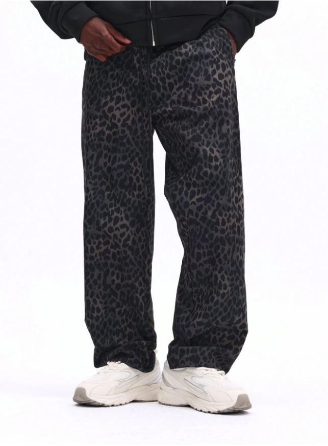 강렬하면서도 세련된 분위기를 연출하는 레오파드 패턴 와이드 팬츠입니다.